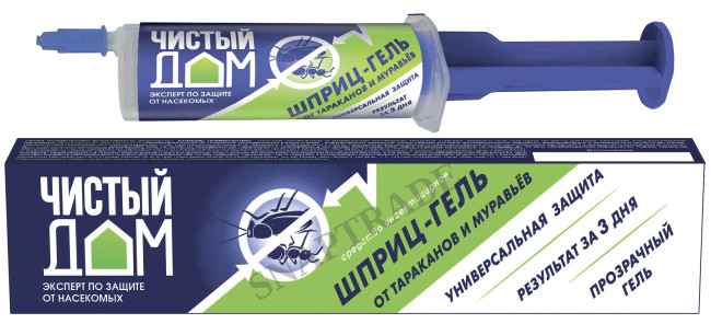 "Чистый дом" Шприц-гель от садовых и домашних муравьев и тараканов (шприц 20 мл.)
